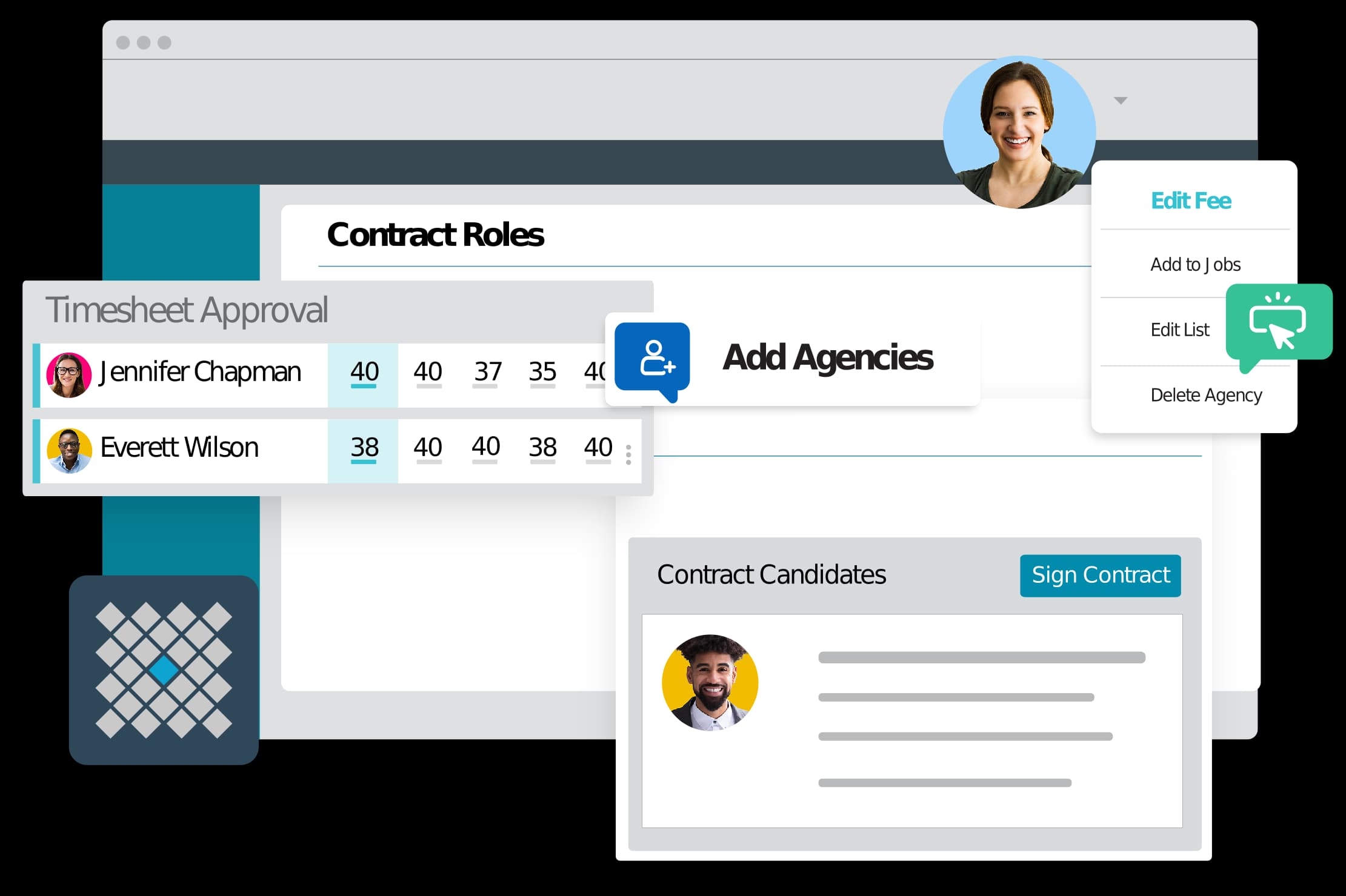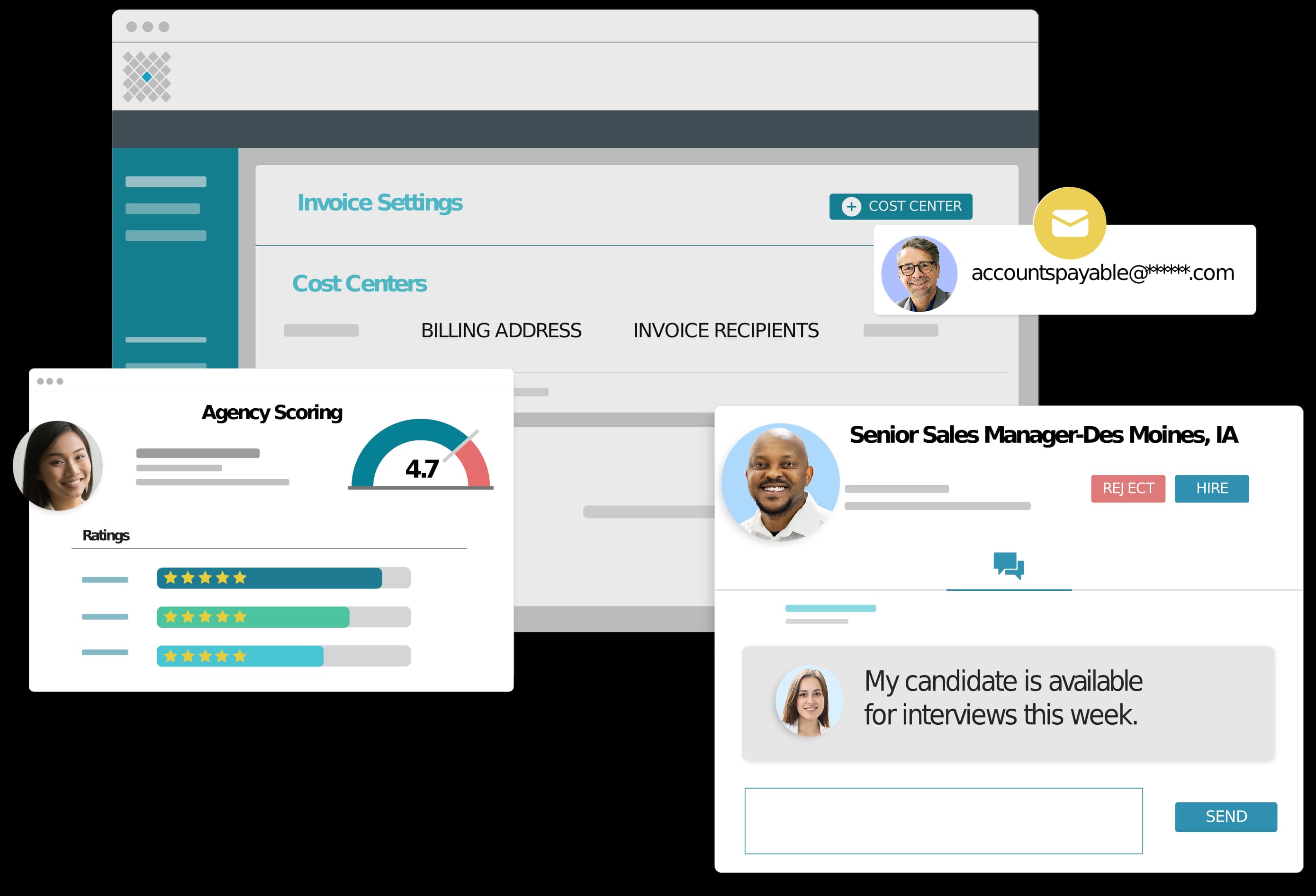 Transform your existing agency process by consolidating agency contracts, billing, communications, and candidates into a single streamlined platform.