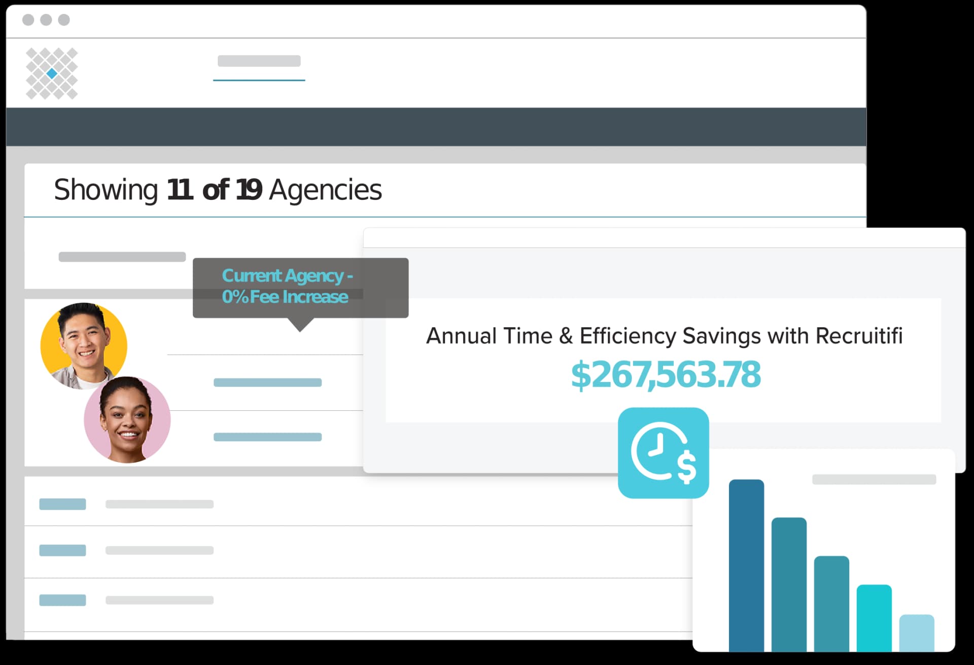 Whether you use agency recruiters or not, without RecruitiFi you're leaving time, money, and talent on the table. Your entire organization will benefit from streamlined workflows and reduced costs.